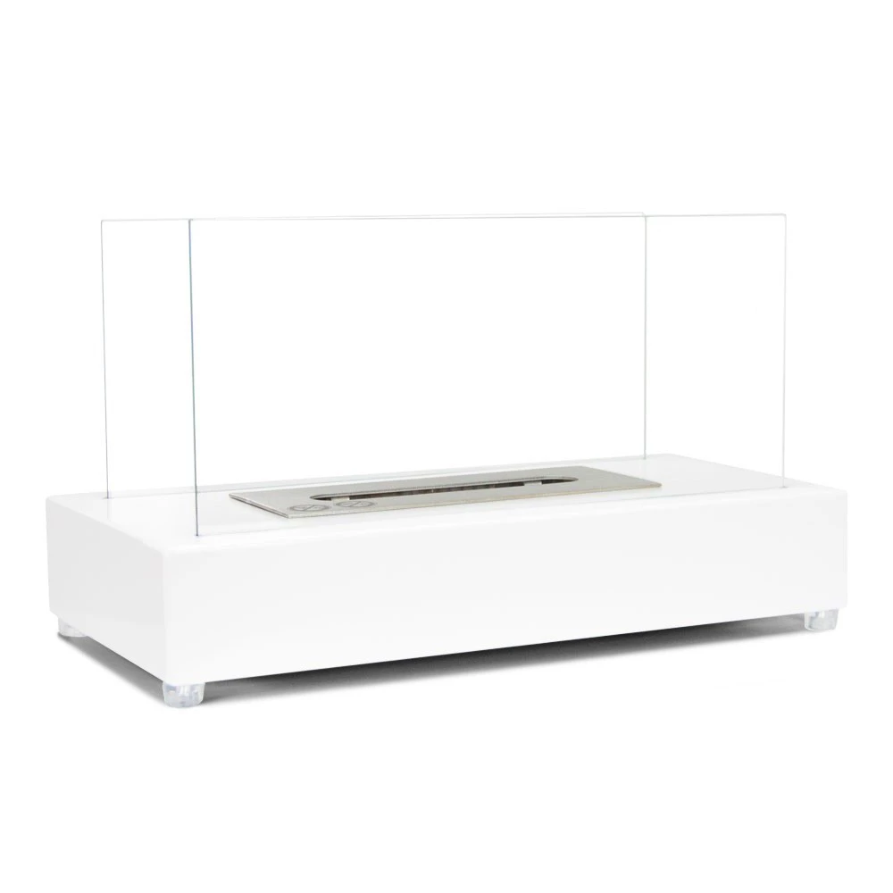 ScandiFlames Lambeth bord biopejs i hvid er en elegant og lille bioethanolpejs, der kan bruges både inde og ude. Med sin rektangulære form og tidsløse design er den stilren og opsigtsvækkende. Sikkerhedsglas på begge sider sikrer ilden og giver maksimalt