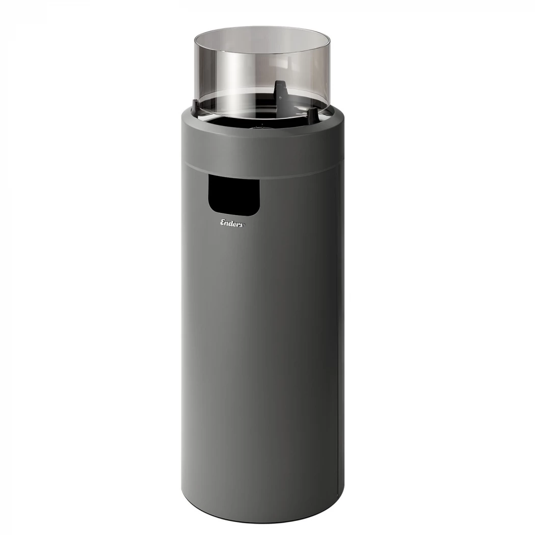 Moderne gaspejs med LED lys i top og bund, som fremhæver flammerne og selve søjlen. Hjulene gør pejsen nem at flytte.