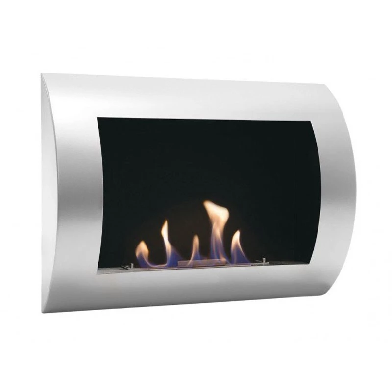 ScandiFlames Ocean væghængt biopejs i mat grå stål. Måler H: 45 cm, B: 60 cm, D: 13,4 cm. Den har et brandkar med en kapacitet på 0,7 liter, der giver ca 2,5 – 3 timers brændetid og en varmeeffekt på ca. 1,75 kW. Pejsen har en buet front, som fremhæver